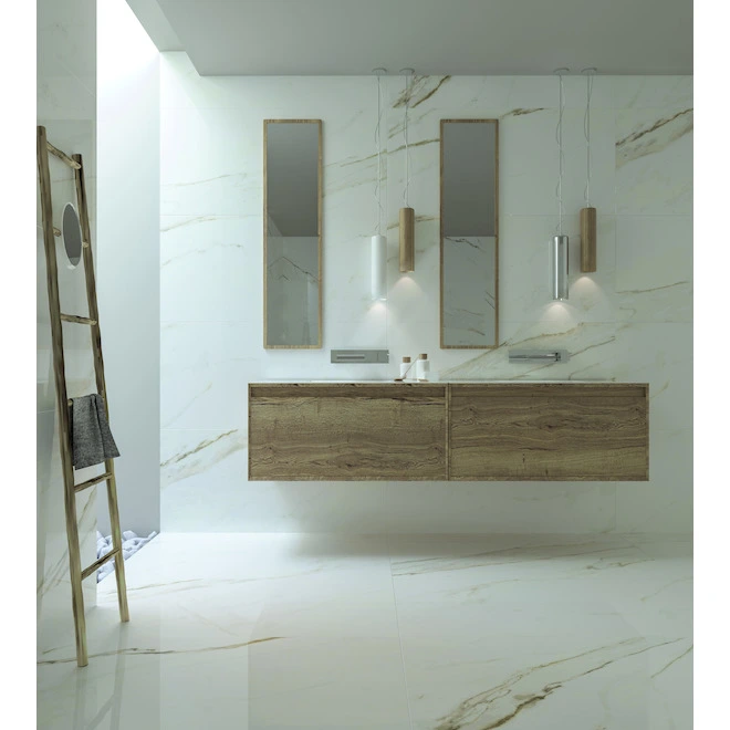 Ces carreaux en porcelaine or Carrara de Faber Stone & Tile apporteront une touche classique à votre intérieur tout en restant contemporain. Profitez d’un sol facile d’entretien et imperméable, classé pour un trafic intense. Ce produit bénéficie d’une garantie limitée à vie. L’or de Carrare présente des veines semblables à celles de Calcatta, ce qui confère un aspect étonnant et élégant à toute pièceLa chaleur de l’or de Carrare permet de créer des espaces classiques ou contemporains en phase avec les tendances actuelles