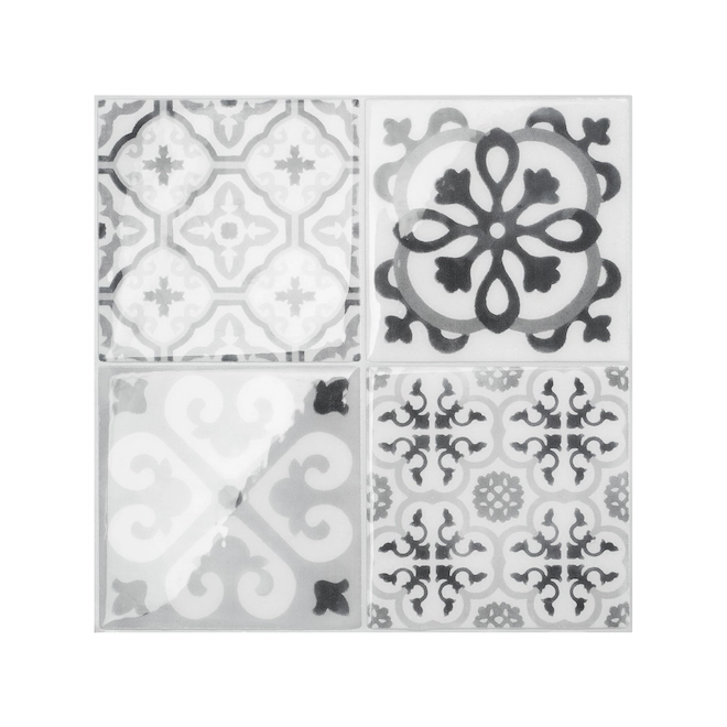 Carreaux à Dosseret Autoadhésifs Style Rétro Bartoli De Smart Tiles, Résine, Noir Et Gris, 9 X 9 Po, Boîte De 4