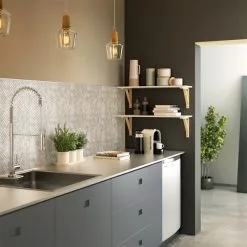 SPEEDTILES Échantillon De Tuile Murale Autocollante Chevron Sesame 3x Faster En Pierres Naturelles Grises 4 Po De Speed Tiles