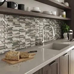 Échantillon De Tuile Murale 4 Po X 4 Po Verre Gris Mélangés Linéaire 3X Faster, SpeedTiles