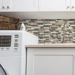 Tuiles Murales Autocollantes 3D Bellagio Nola De Smart Tiles, 10 Po X 10 Po, Beige/brun/caramel/ivoire, Résine, 4 Pièces