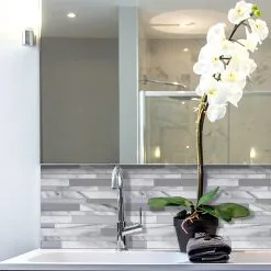 Tuiles Murales Autocollantes 3D Milano Carrera De Smart Tiles, 10 Po X 11 Po, Gris/blanc, Résine Multifinis, 4 Pièces