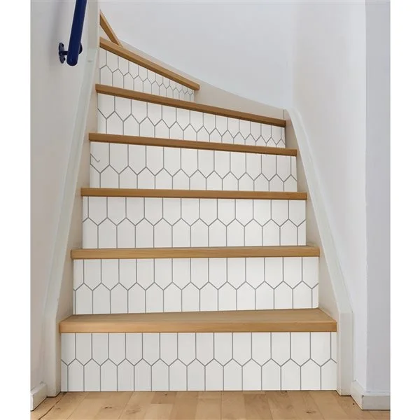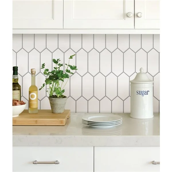 Dosseret traditionnel blanc autocollantPanneaux de carreaux autocollants avec une finition brillanteUn poêle sans support a besoin de 15 po (38 cm) d’espace ou plus au-dessus de la plage pour éviter l’exposition du produit à la chaleurEssuyer avec un chiffon humideUn paquet contient 4 tuiles mesurant chacune 10 pouces par 10 pouces