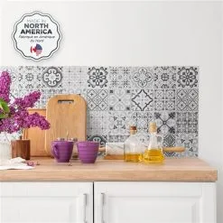 Tuiles Autocollantes Vintage Leone De 9 Po X 9 Po Gris Et Blanc Par Smart Tiles, Paquet De 4